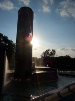 Wir parkten direkt vor der City Hall und gingen dann zu Fuß um den Platz und die Straßen. Hinter der City Hall befindet sich ein kleiner Teich. Dieser Platz wurde von einem Texaner gespendet unter der Auflage, daß kein Betrunkener wegen Trunkenheit in der Öffentlichkeit verhaftet wird.